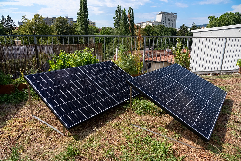 Las mini sistemas PV, o kits solares, se utilizan cada vez más en zonas urbanas para generar energía solar propia. Los mini sistemas son especialmente adecuados para instalarlos en el propio jardín, ya que requieren poco espacio y pueden instalarse prácticamente en cualquier superficie gracias a su poco peso. Esto significa que, incluso en zonas densamente pobladas, los hogares con pequeños espacios verdes pueden cubrir su consumo eléctrico con energía renovable.